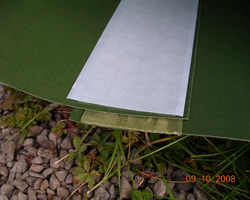 Legen Sie beide Enden des Wurzelsperrenbogens übereinander und kleben Sie sie mit einem doppelseitigen Klebeband wie dem Xavan® Butyl-Klebeband zusammen. Bringen Sie einen zweiten Streifen an, bevor Sie das Schutzpapier von der Oberseite entfernen.